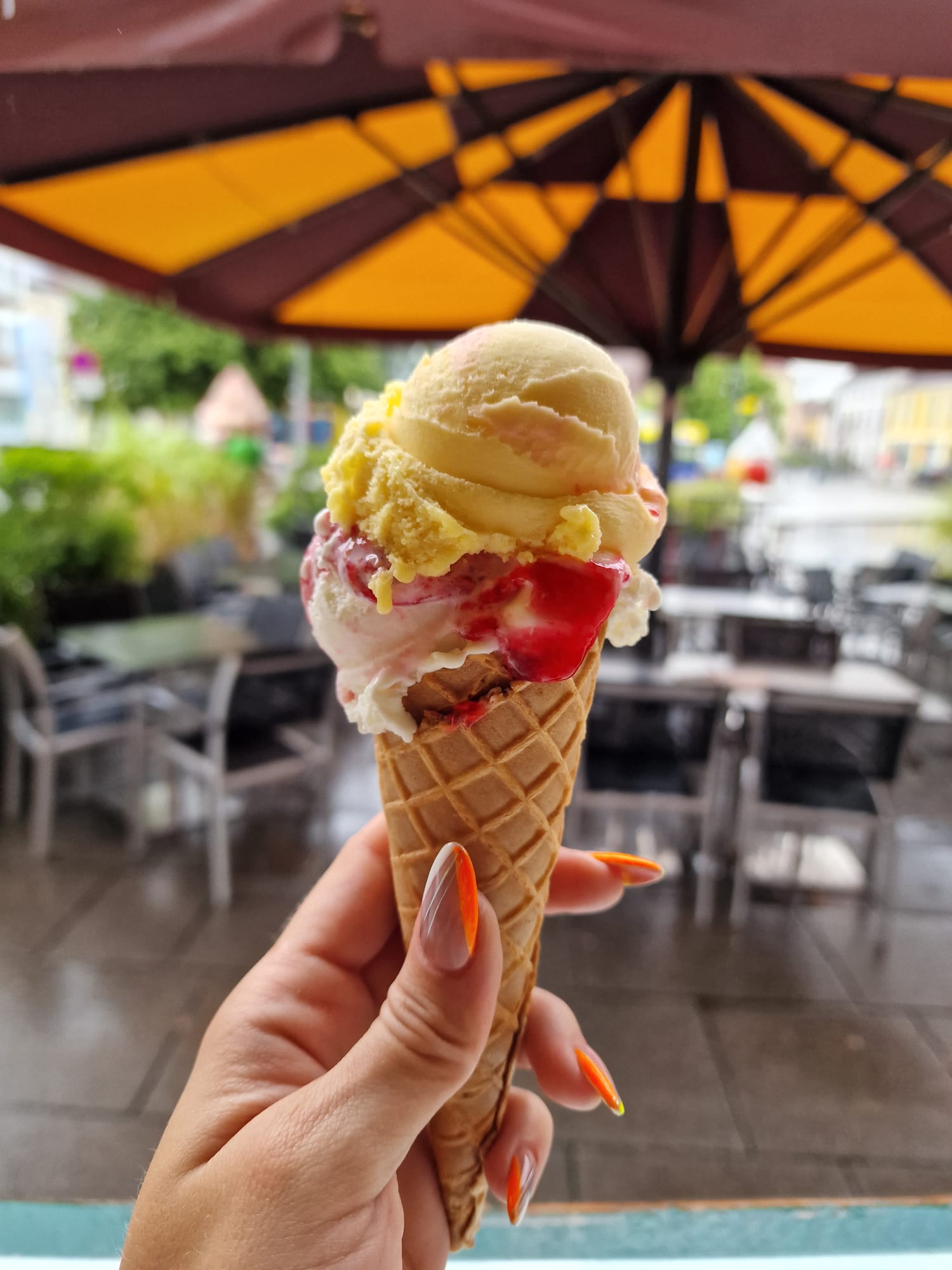 Genießen Sie bei uns eine große Auswahl an köstlichen Eissorten, frisch zubereiteten Kaffeespezialitäten und erfrischenden Getränken. Unser Eis wird täglich in handwerklicher Tradition hergestellt und besteht aus besten Zutaten. Ob klassische Sorten wie Vanille, Schokolade und Erdbeere oder ausgefallene Kreationen wie Cheesecake, Toffifee oder Aperol Blutorange, bei uns ist für jeden Geschmack etwas dabei.